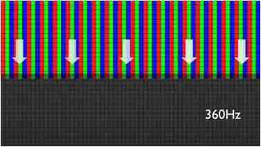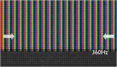 传统液晶驱动是从左到右单向进行,,,,在画面更新速度愈来越愈快的情况下,,位于驱动线路末端的右下角区域,,,画素的闸极来不及在短时间内获得足够电压,,无法显示出正确的颜色资讯。。。。 |